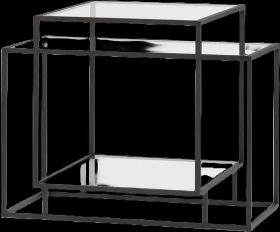 - Material descriptionFrame: metal powder coated black (RAL 9005) or taupe (RAL 7006) // Glass top: clear glass