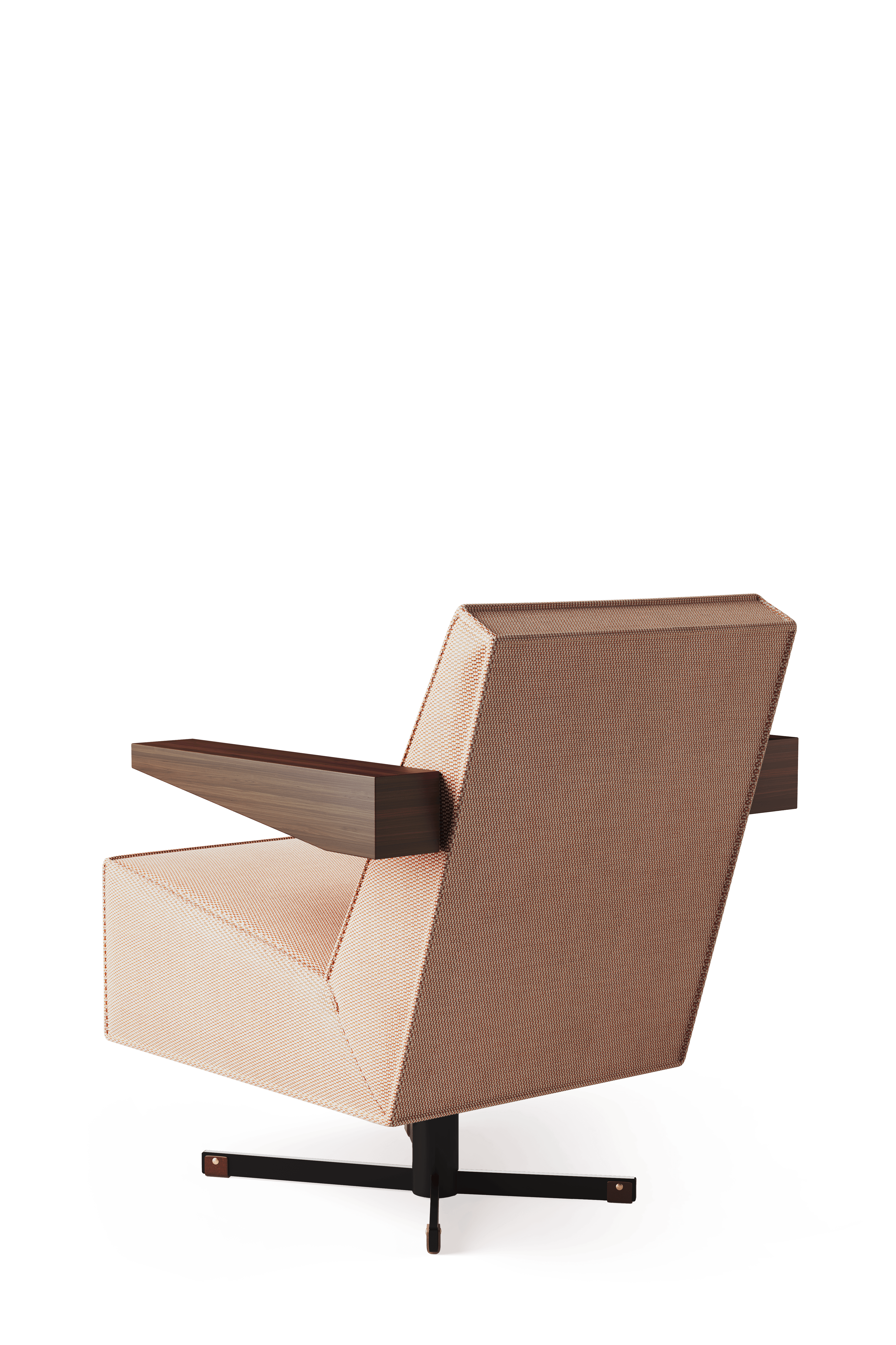 The Press Room Chair is equipped with a swivel base featuring a return mechanism, ensuring it always returns neatly to its original position.