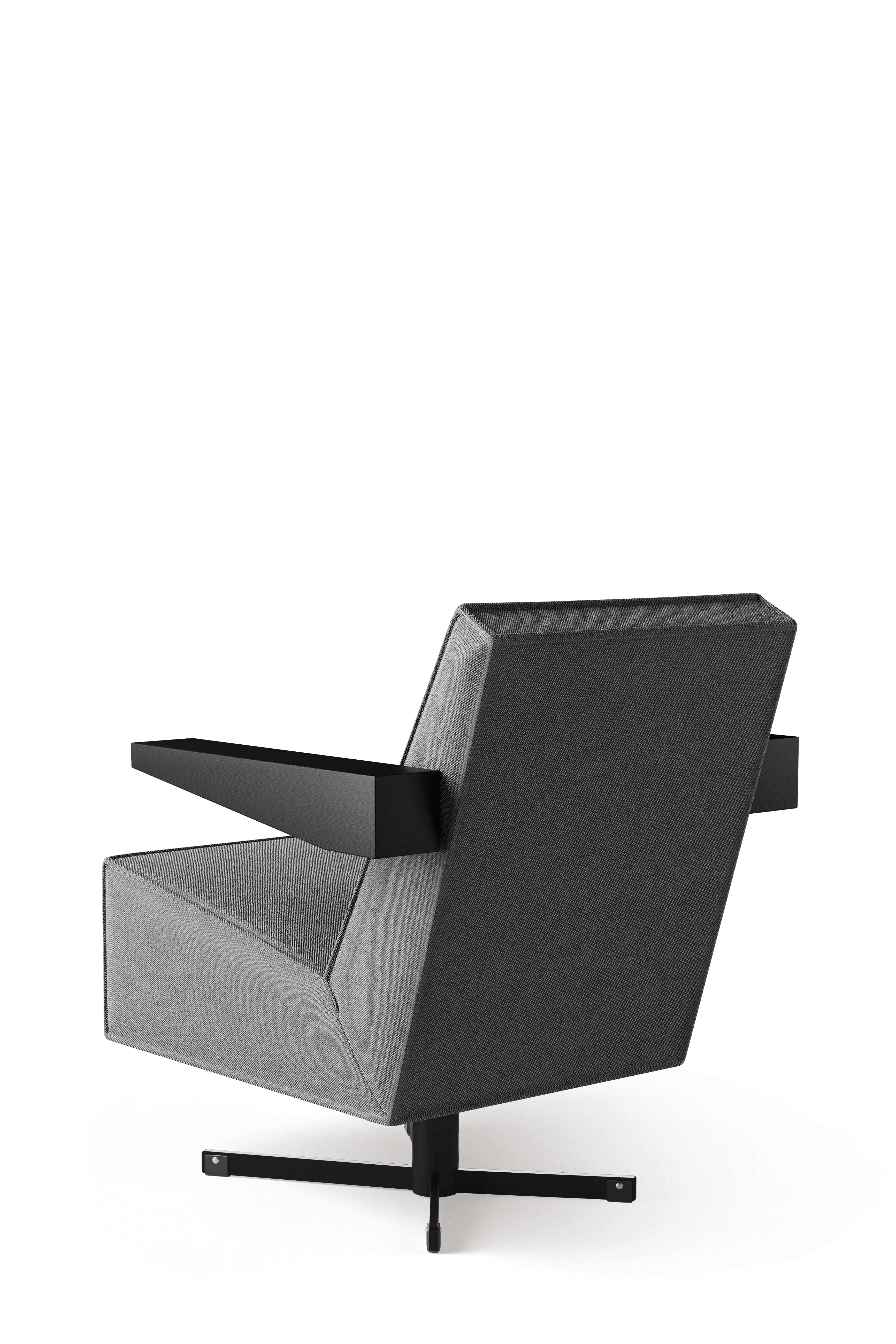 - Material descriptionSolid oak armrests (natural or black) or walnut // Black powder coated swivel base // Upholstery in fabrics or leather