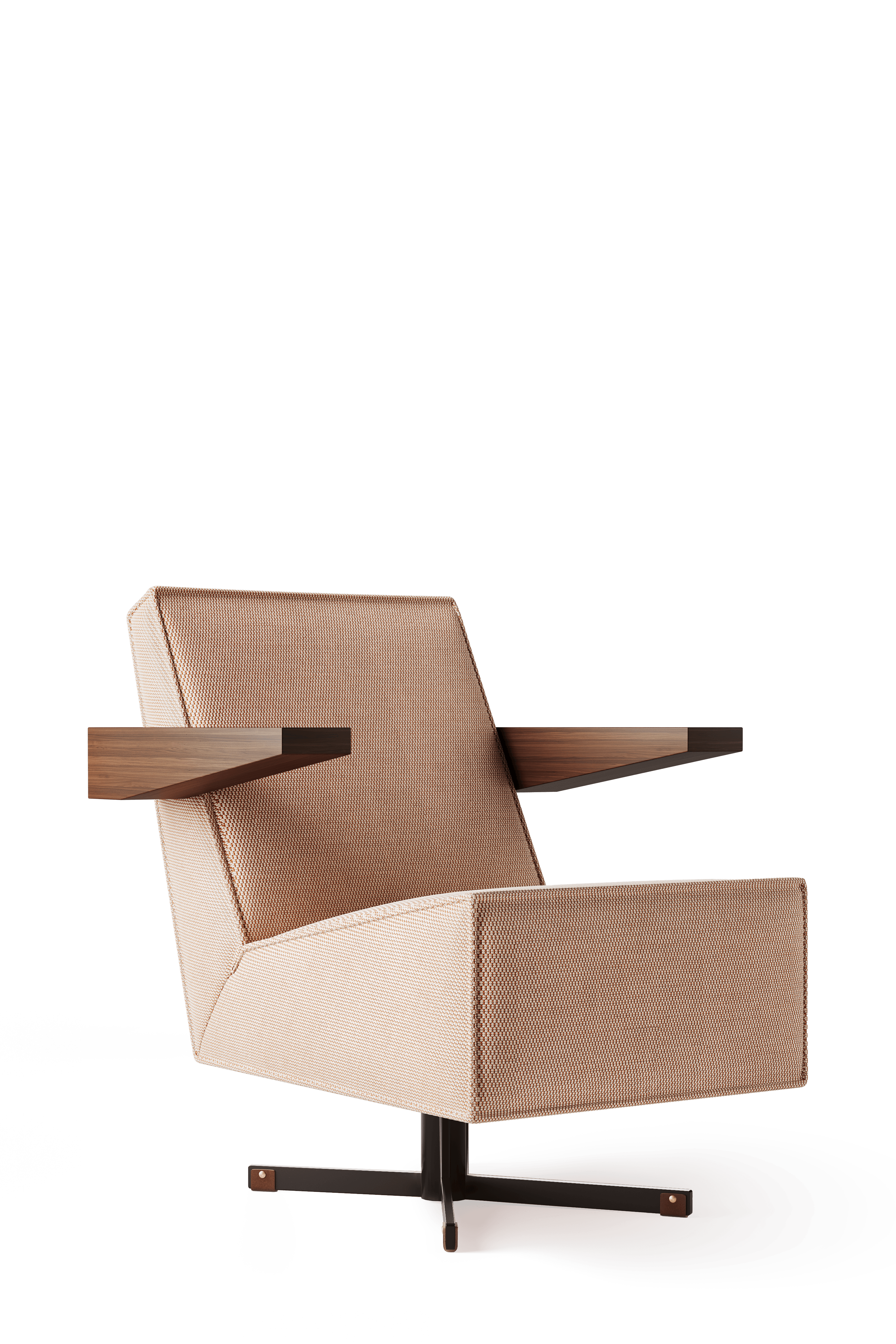 The Press Room Chair is equipped with a swivel base featuring a return mechanism, ensuring it always returns neatly to its original position.