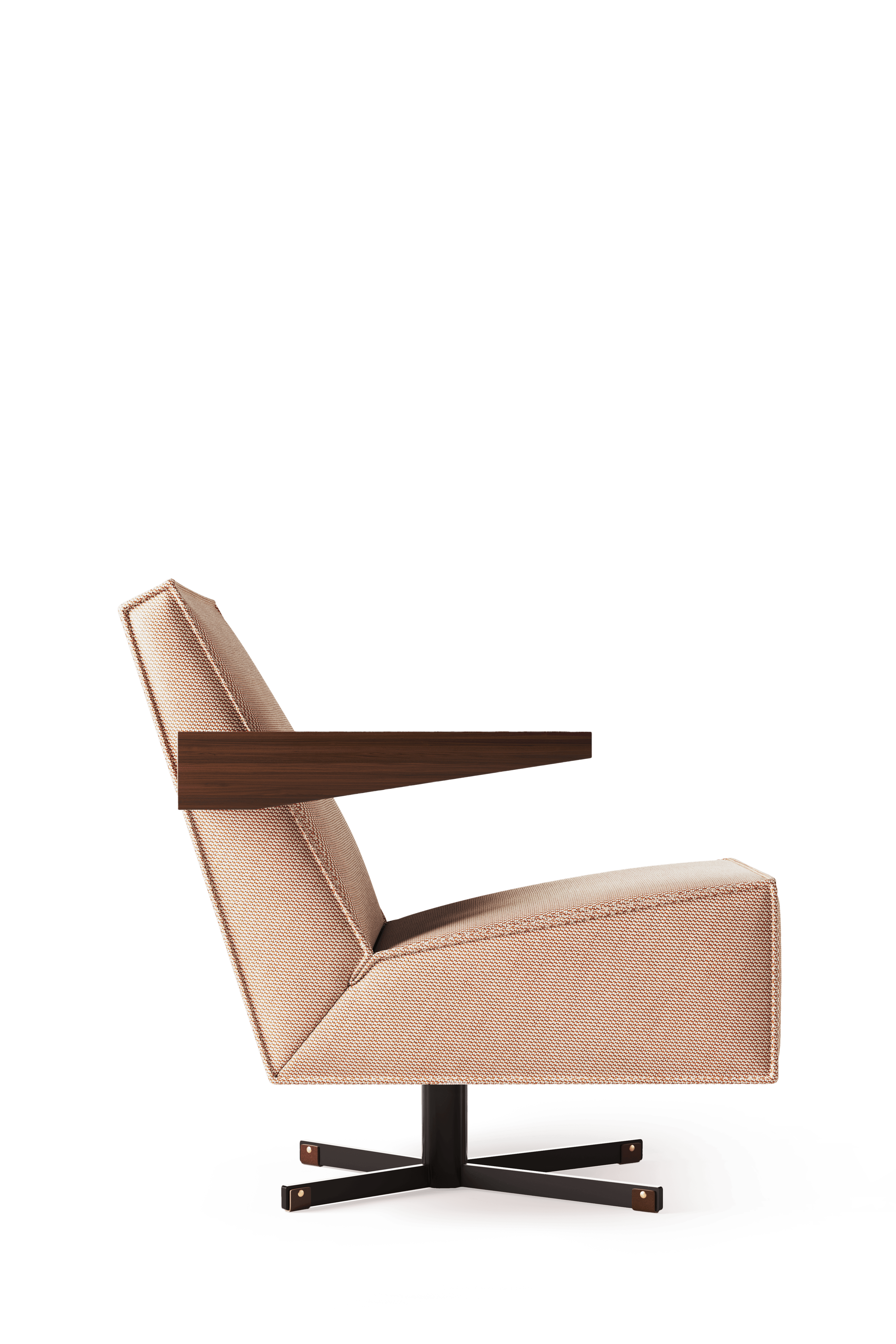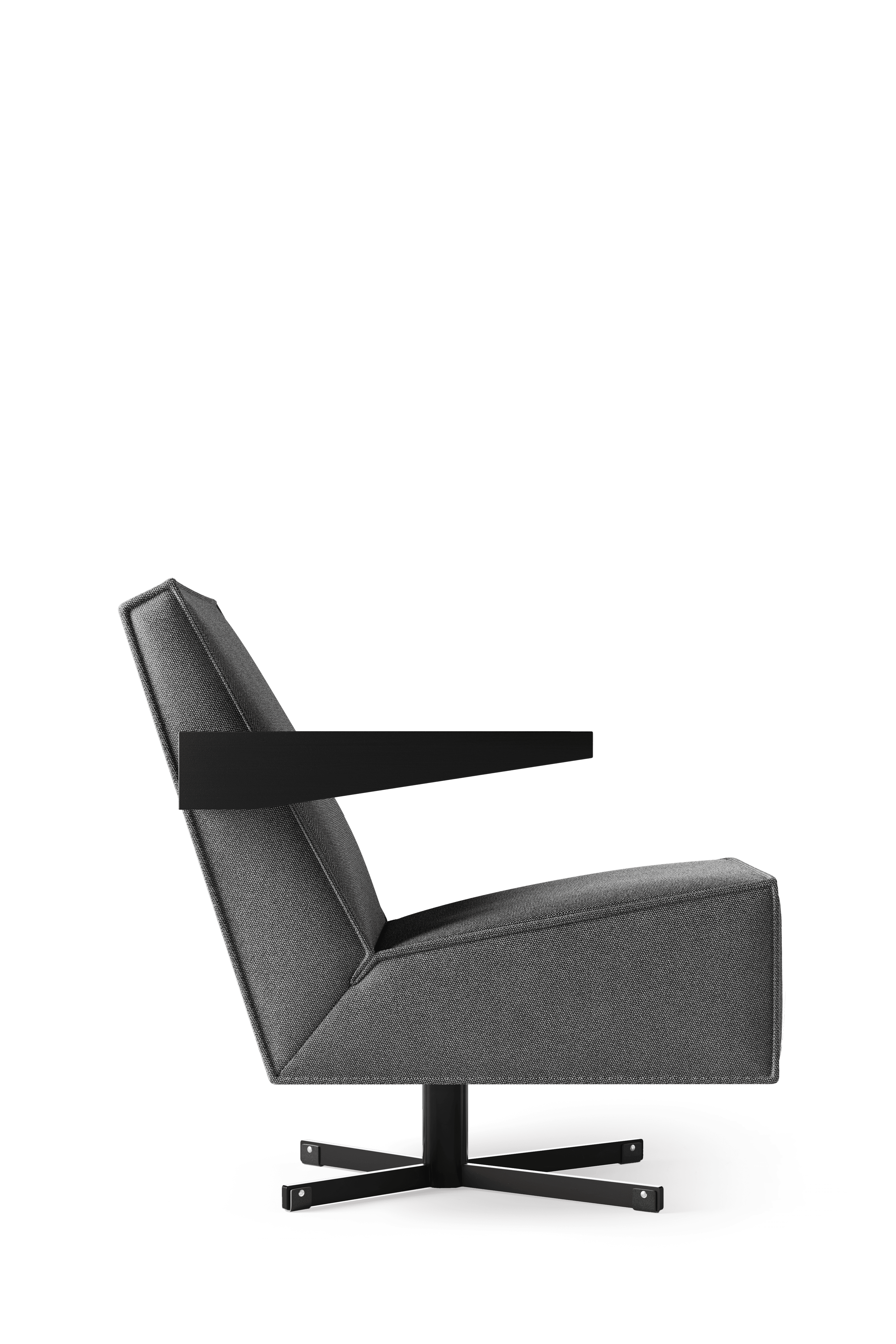 - Material descriptionSolid oak armrests (natural or black) or walnut // Black powder coated swivel base // Upholstery in fabrics or leather