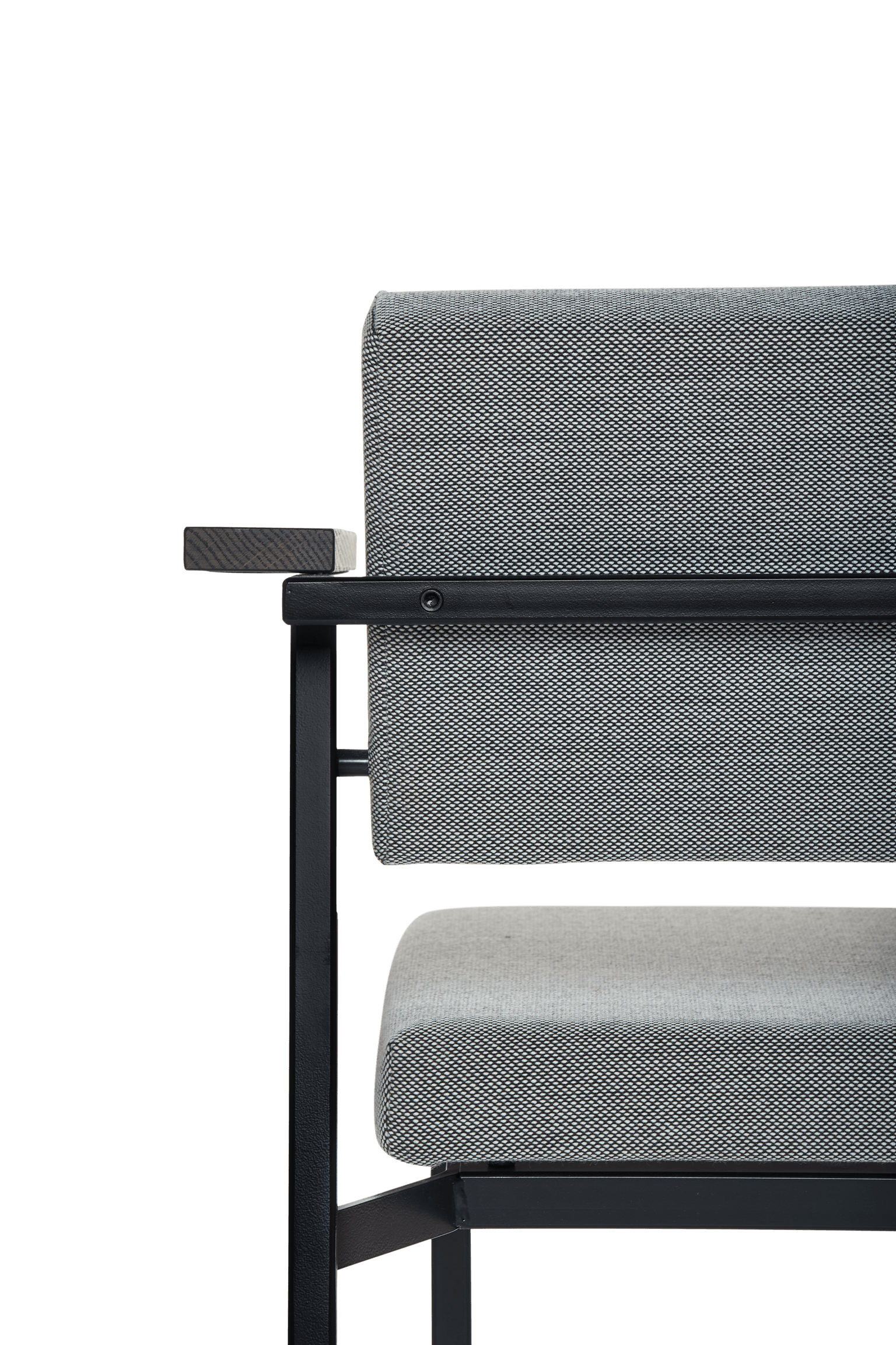 - Material descriptionFrame: square tubular steel with black powder-coat finish // Armrests: solid oak (natural or dark brown) or walnut