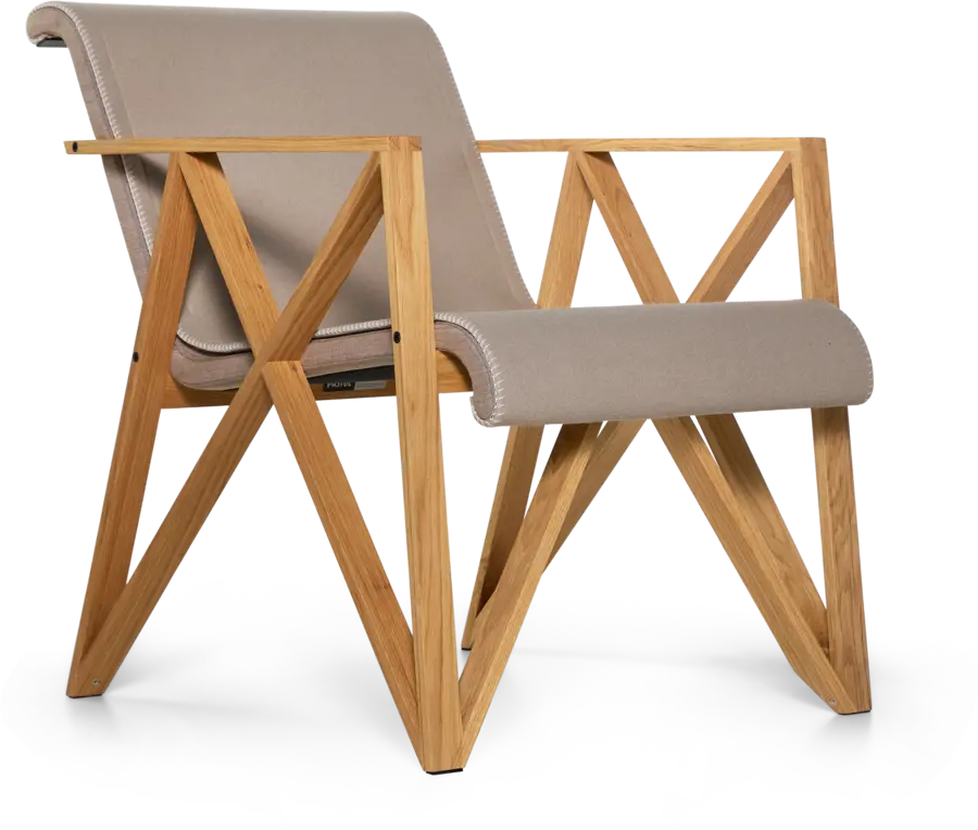 The base of the Armchair for Metz & Co is crafted from solid wood with dovetail joints. The foam molded seat is fitted with a cushion in felt or leather, finished with a distinctive blanket stitch.