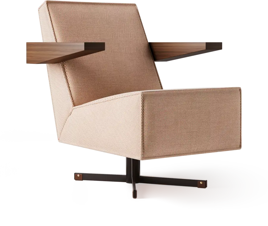 The Press Room Chair is equipped with a swivel base featuring a return mechanism, ensuring it always returns neatly to its original position.