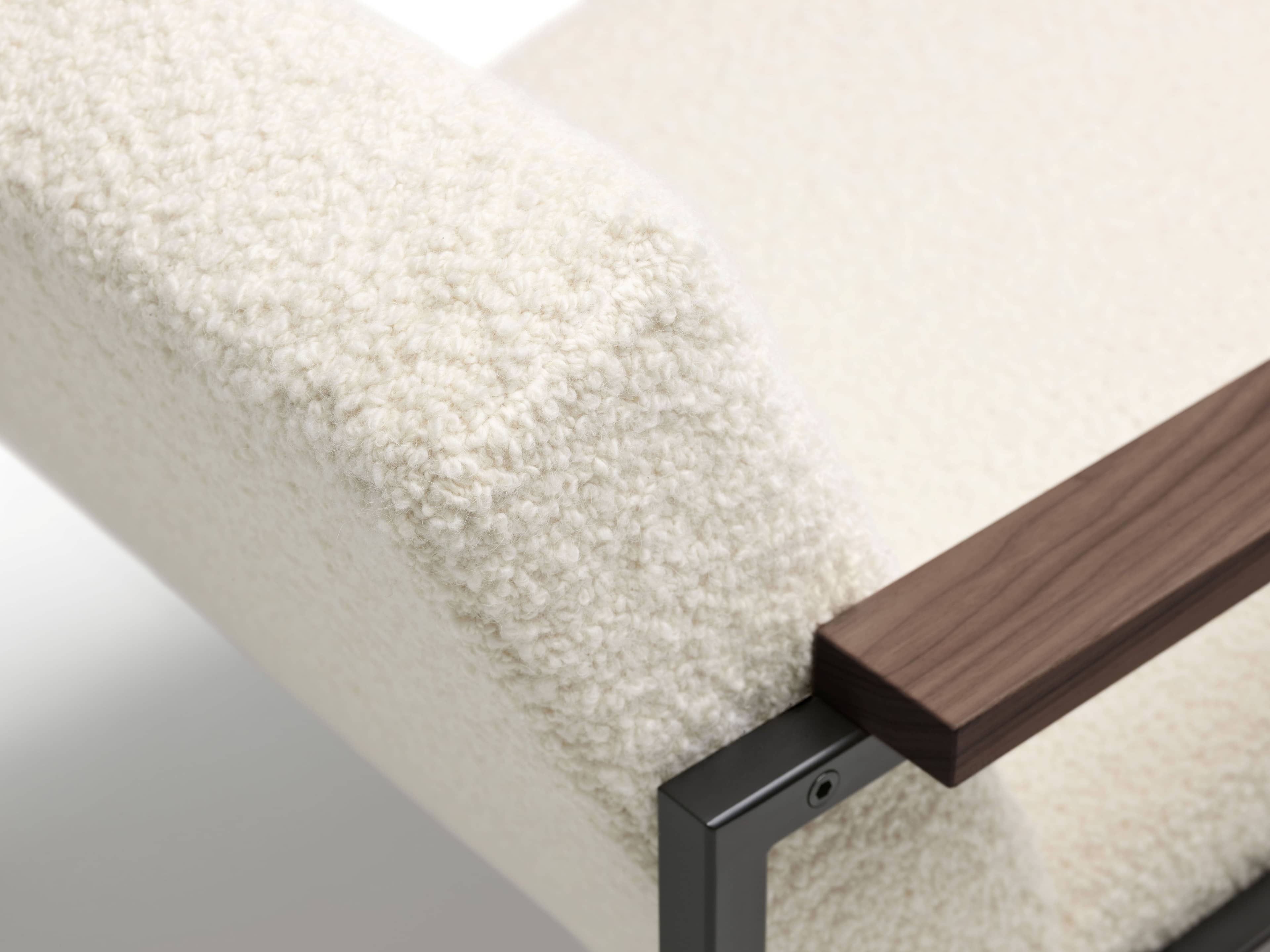 - Material descriptionSolid oak armrests (natural or black) or walnut // Black powder coated swivel base // Upholstery in fabrics or leather
