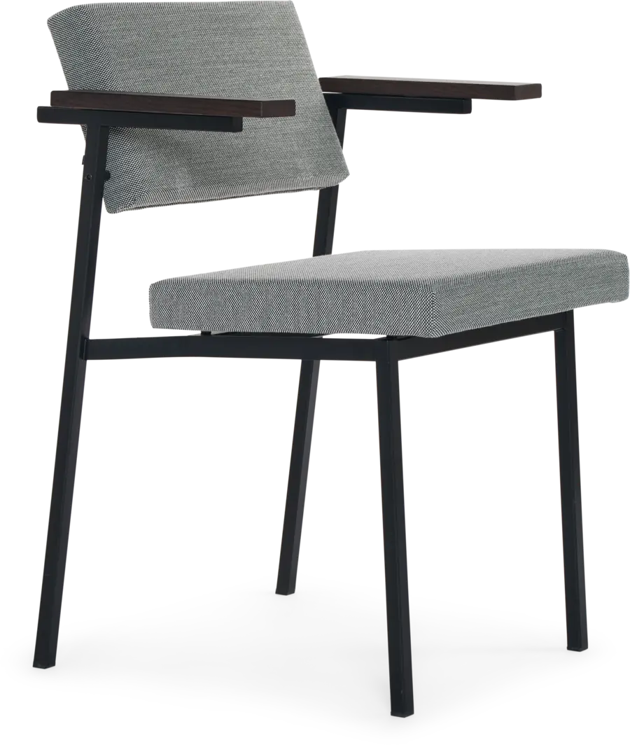 - Material descriptionFrame: square tubular steel with black powder-coat finish // Armrests: solid oak (natural or dark brown) or walnut
