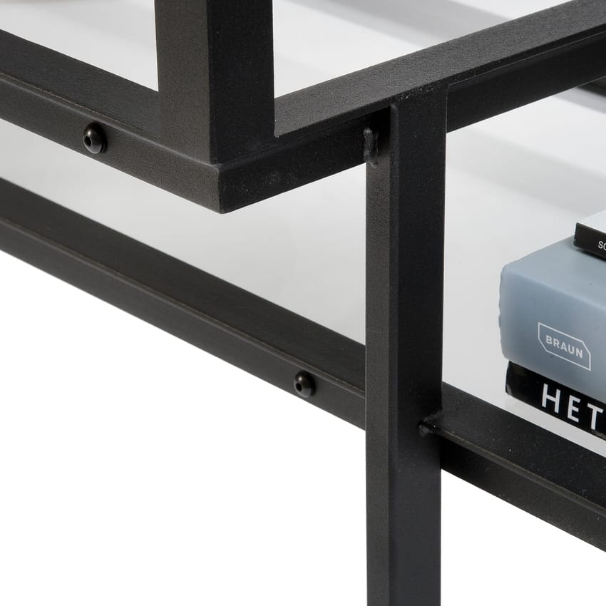 - Material descriptionFrame: Powder coated fine texture matte (black RAL 9005 or taupe RAL 7006) metal // Glass: clear glass panel // Black screws standard with black frame. Brass screws standard with taupe frame