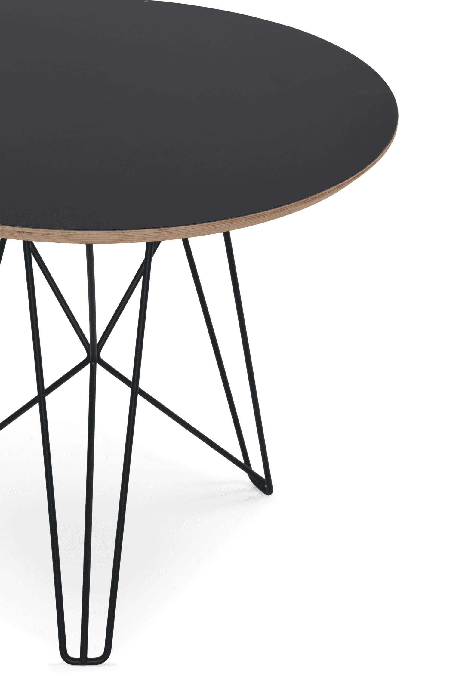 - Material descriptionTop: birch plywood with laminate, oak veneer, or American walnut veneer //Frame: powder-coated black steel or brushed stainless steel // Legs: black powder-coated